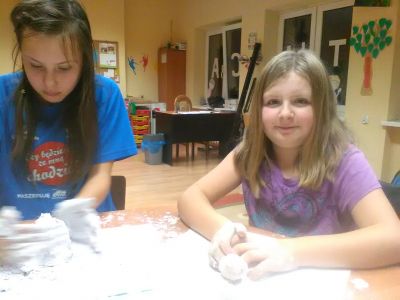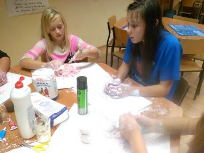 W ramach zajęć technicznych dzieci ze Świetlicy miały okazję nauczyć się robić samodzielnie „Piankolinę”. Jest to masa plastyczna, która swoimi właściwościami upodoabnia się do piasku kinetycznego. Do jej stworzenia wystarczyła zaledwie pianka do golenia, mąka ziemniaczana i płyn do naczyń. Dzieci dodaktowo wykorzystały barwniki spożywcze, aby masa była kolorowa. Każdy Świetliczak otrzymał swoje produkty i rozpoczął ugniatanie piankoliny. Już po chwili masa uzyskiwała właściwą konsystencję i ubarwienie. Po wykonaniej pracy był czas na zabawię. Dzieci lepiły z niej bałwany, serduszka oraz inne figury, aby zaraz po chwili je rozwalić i zacząć lepić na nowo. Dzięki niewielkiemu nakładowi pracy uzyskaliśmy fantastyczny materiał do pracy i zabawy.